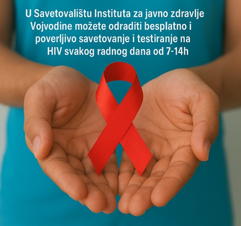 I ove godine, Institut za javno zdravlje Vojvodine (IZJZV) se pridružio kampanji obeležavanja 1. decembra Svetskog dana borbe protiv HIV/AIDS-a, i u saradnji sa Zavodom za zdravstvenu zaštitu studenata i organizacijama civilnog društva smo obezbedili kontinuirano pružanje usluga besplatnog savetovanja i testiranja u zajednici, i to: